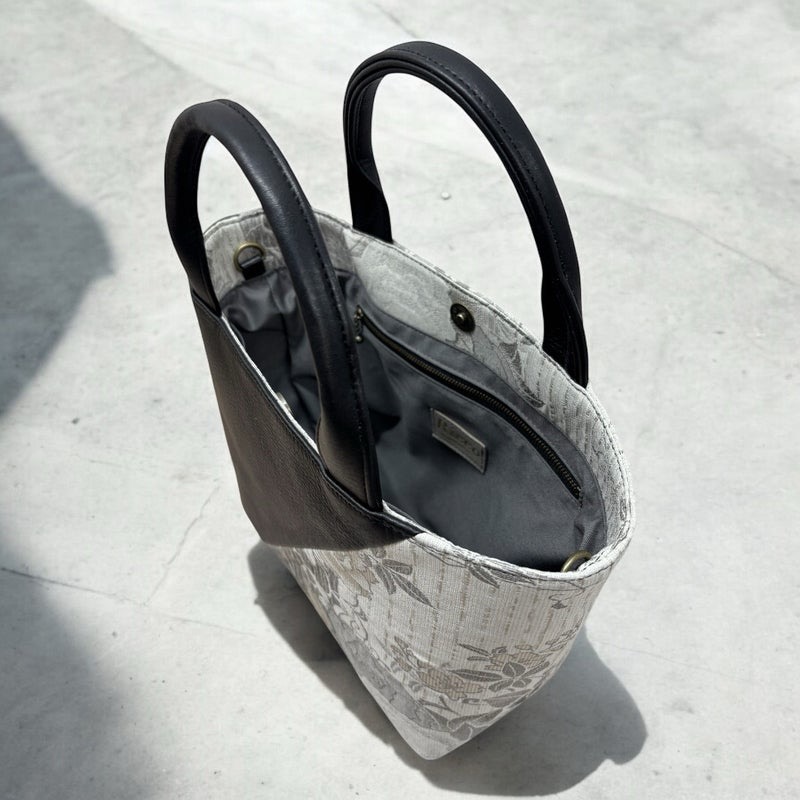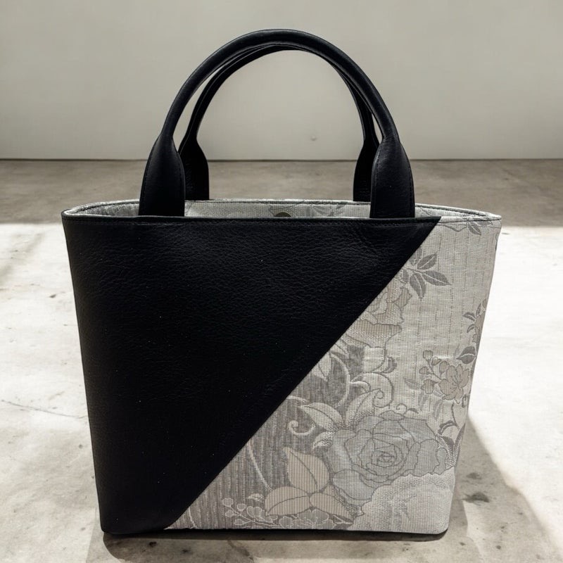定番商品 トートバッグSのサイズをベースに、ちりめん生地を革と合わせてオーダーいただきました✨