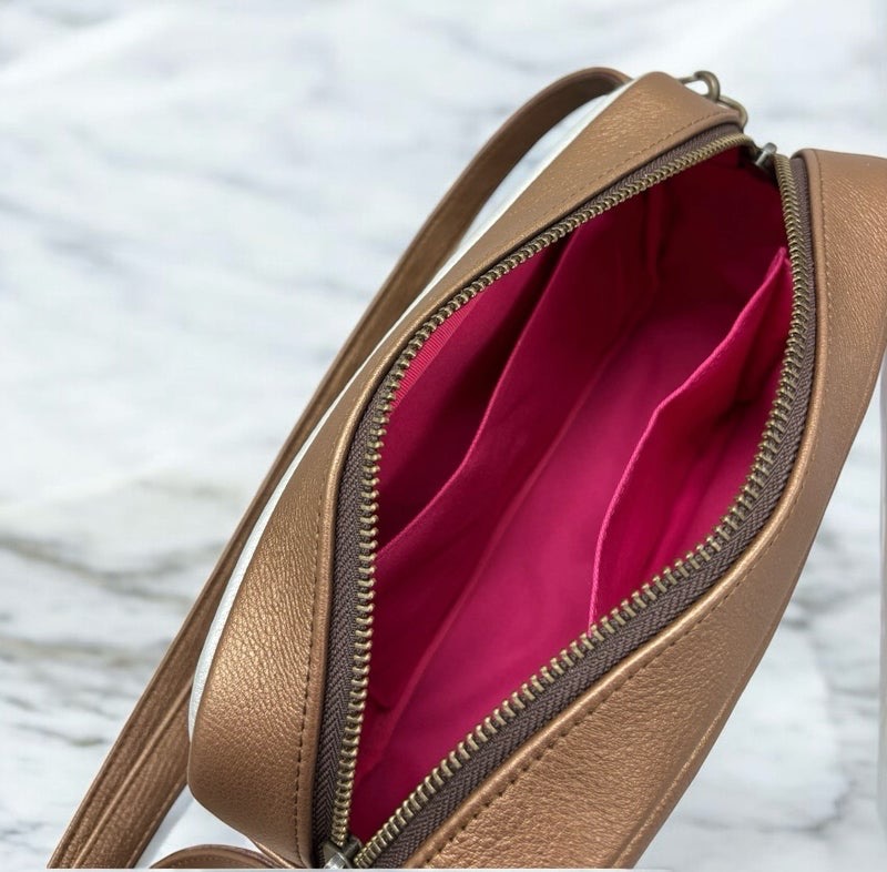 ファスナーを開けた瞬間にパッと目に飛び込んでくる、このビビッドな裏地のピンクも大切なポイントでした。