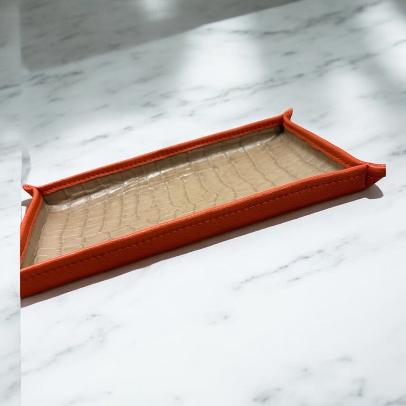 本革ダークオレンジ×クロコ型押しベージュ