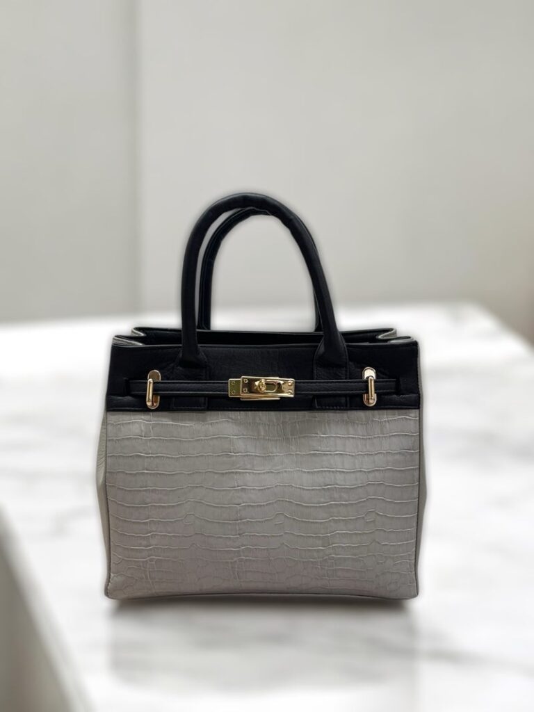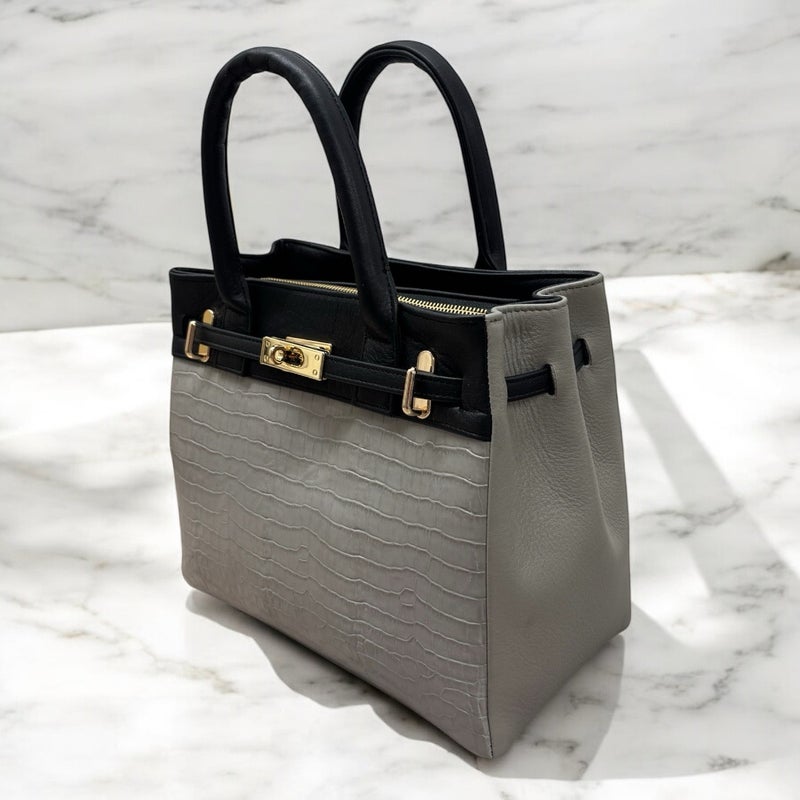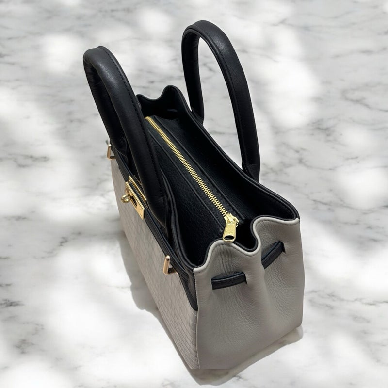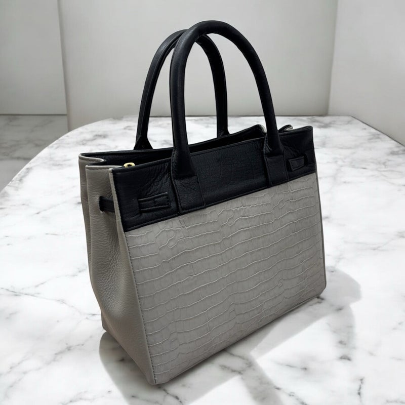 本革ブラック×クロコ型押しグレージュ×本革グレージュ
