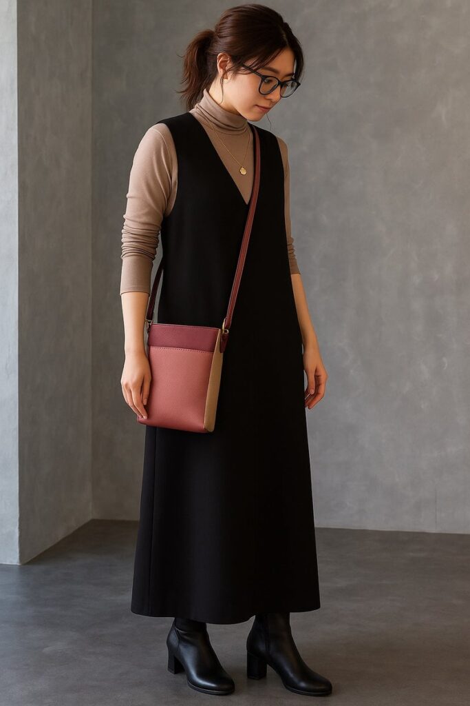 長財布もすっぽり入る、すっきりシルエットのショルダーバッグ。
