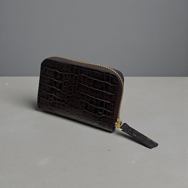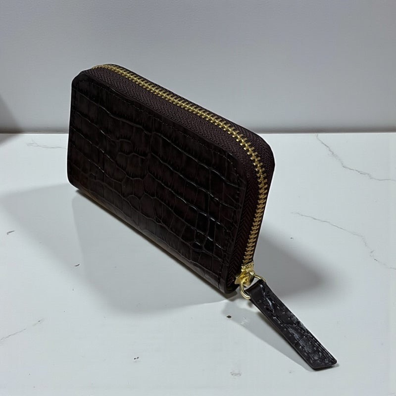 先程、ご紹介したラウンドファスナー長財布と同じクロコ型押しダークブラウンと同じ色の革で仕立てた、長財布とコインケース。