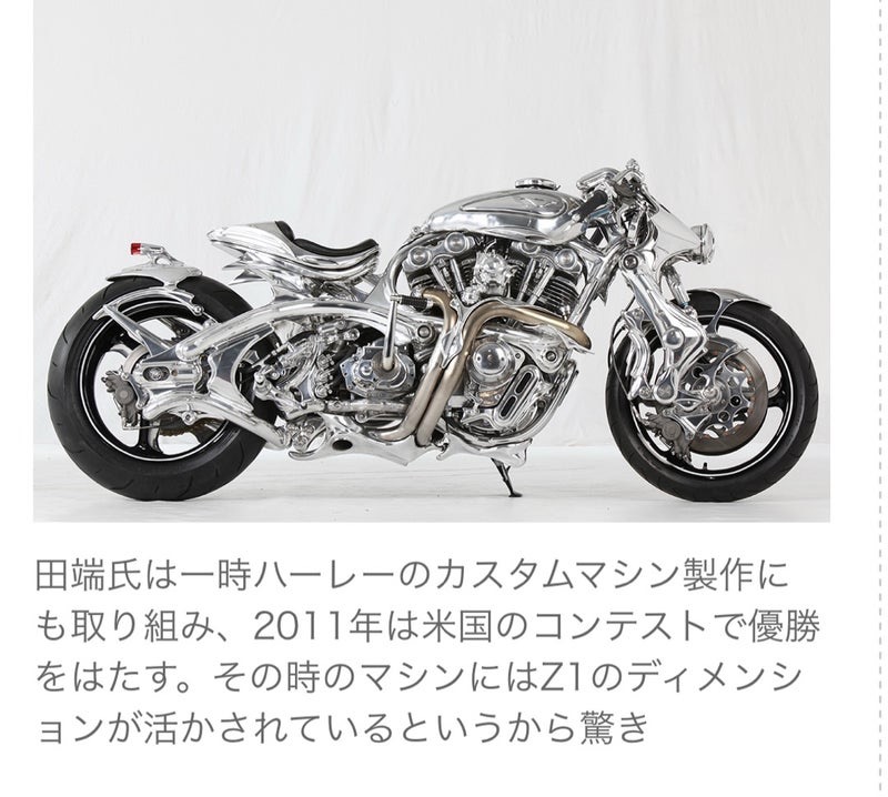 バイクの写真は タバックスエンジニアリング 田端さんがアメリカの世界ビルダーの選手権でチャンピオン取ったカスタムハーレー。