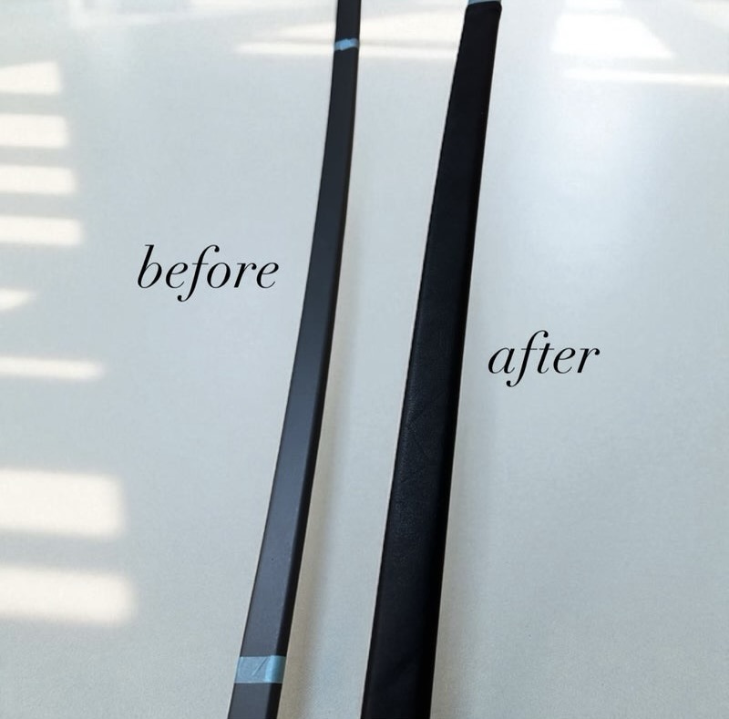 ご希望は、ドアのバーハンドル部分に革を巻いてほしいというもの。