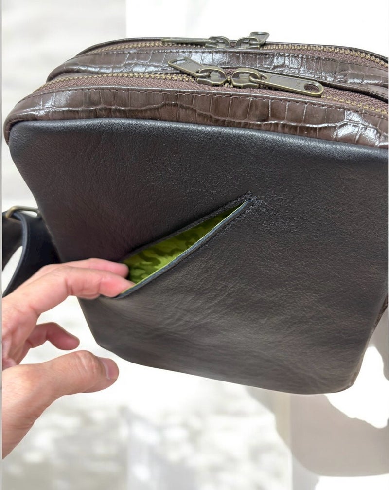 しかも中は2つに分かれていて、外側にはスマホがさっと入るポケット付き。