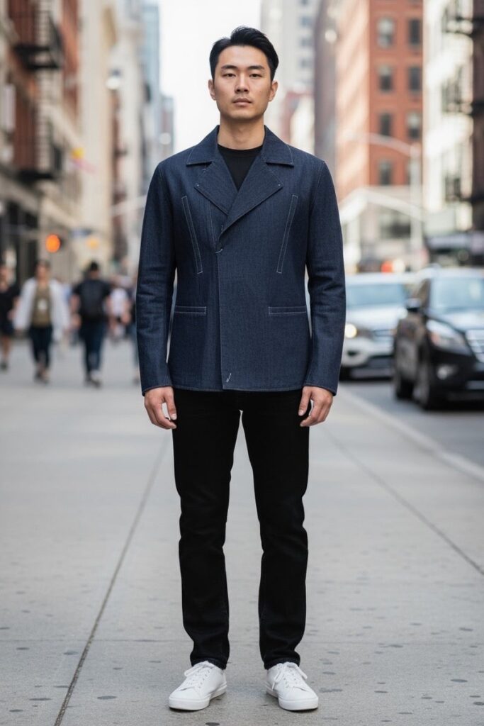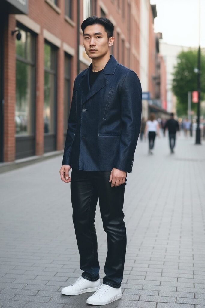 Riccoのレザーウェアはデニムスタイルにも自然に馴染み、羽織るだけでオシャレに着こなせるデザイン。