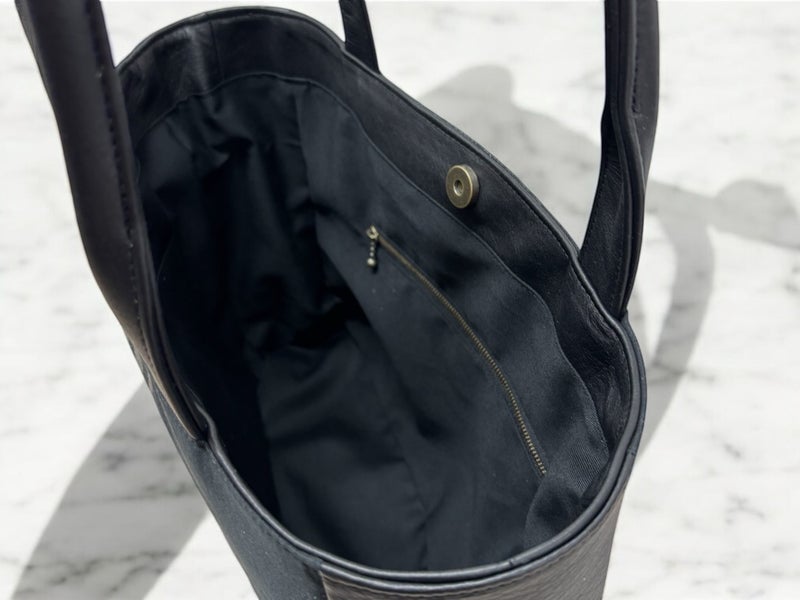 マチ、持ち手、見返しは本革ブラックをお選びになりました。
