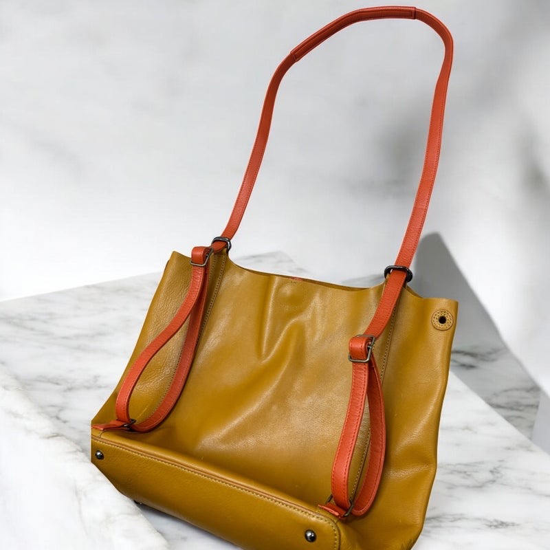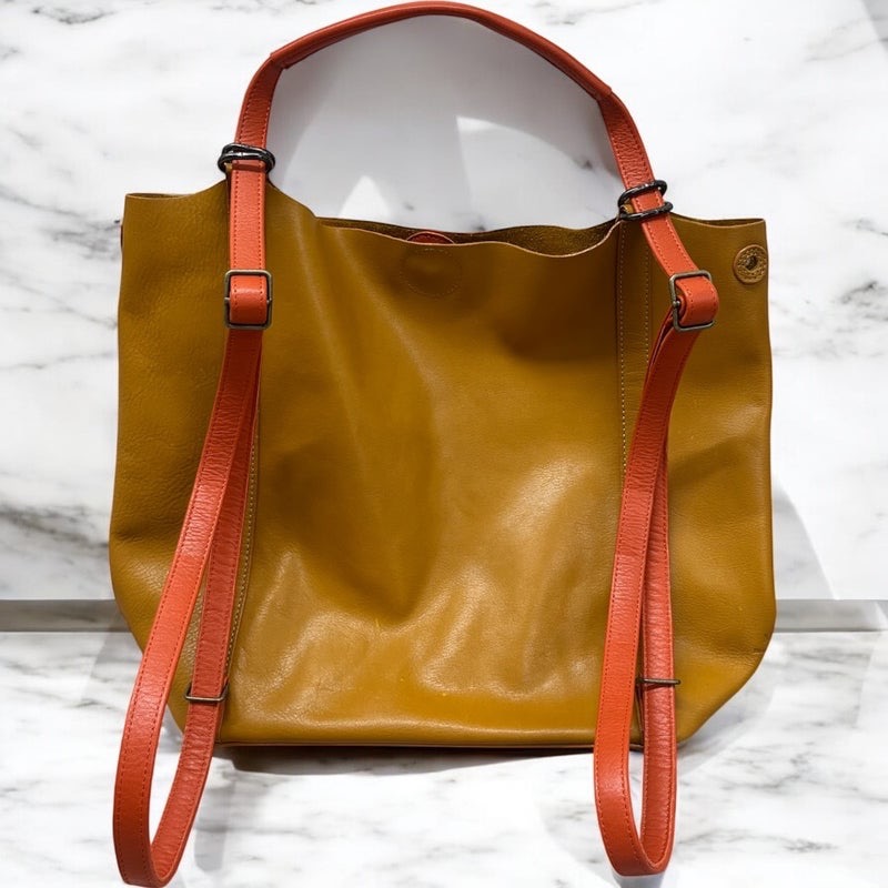プレゼントでいただいたバッグだそうで、使わずに置いておくのではなく、日常で使えるようにするならリュックがいいのでは?と、「リュックにできませんか?」とご来店。
