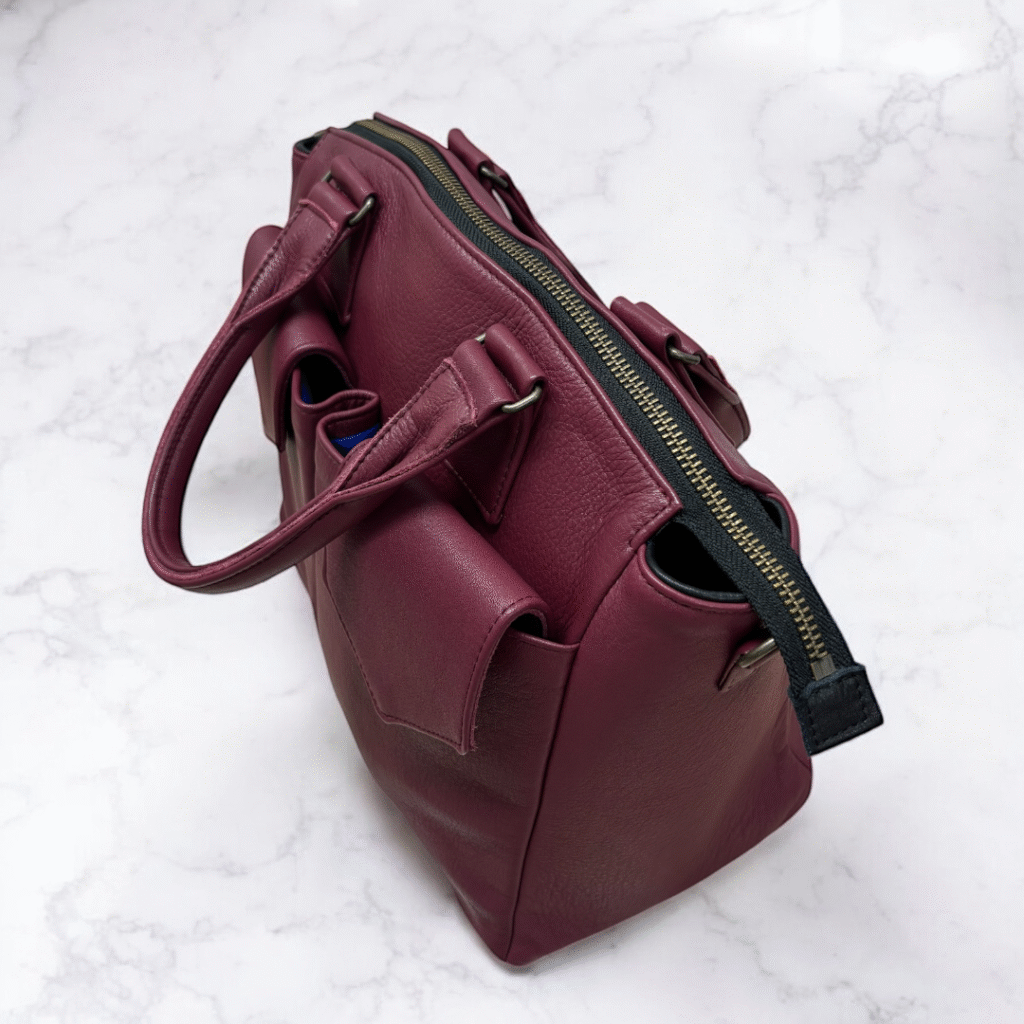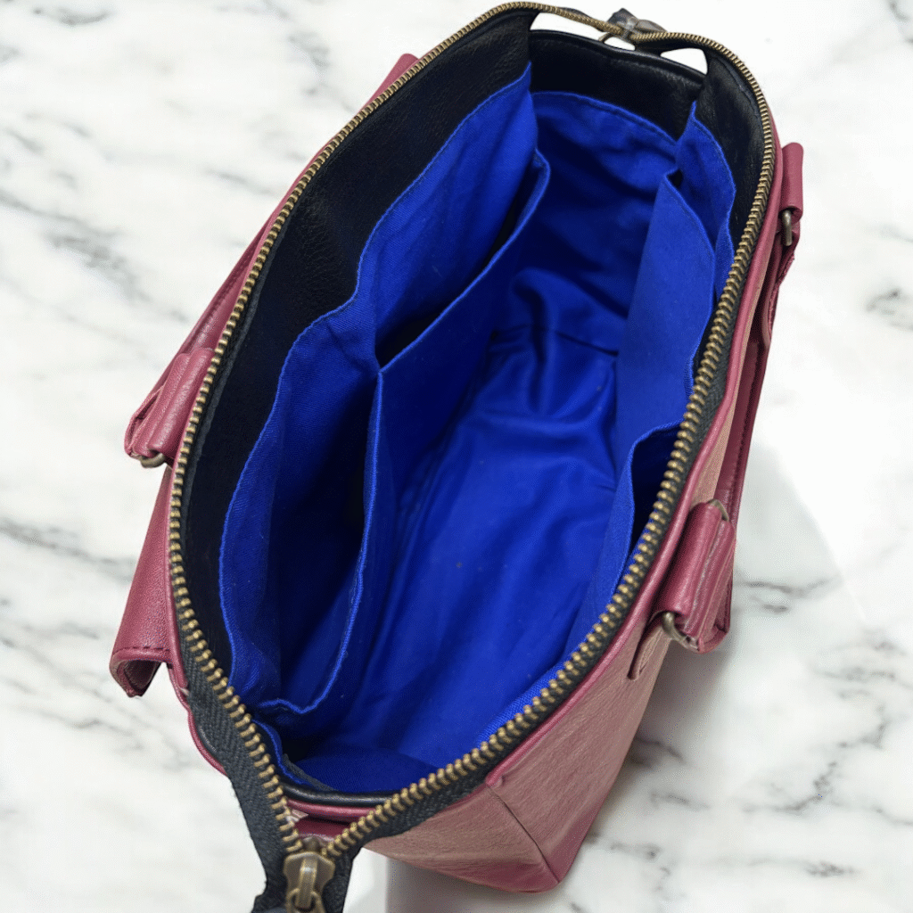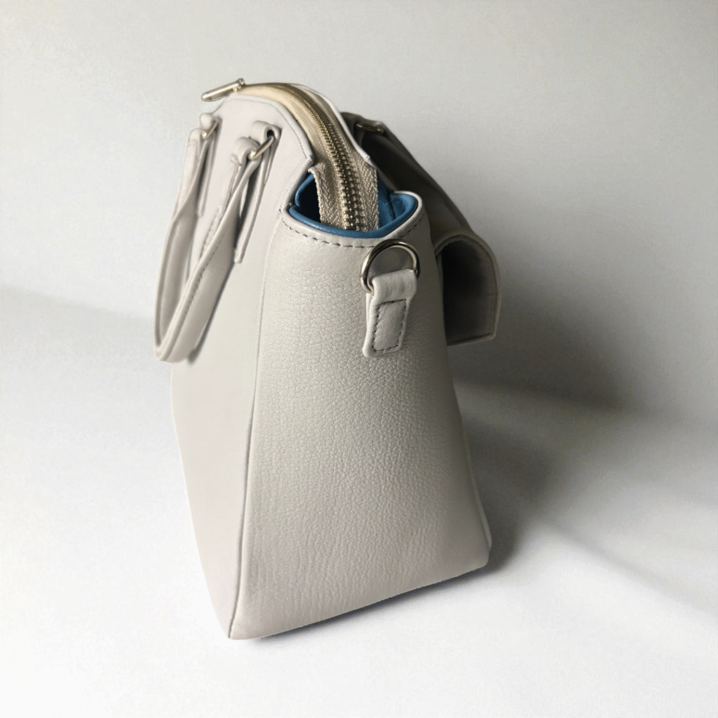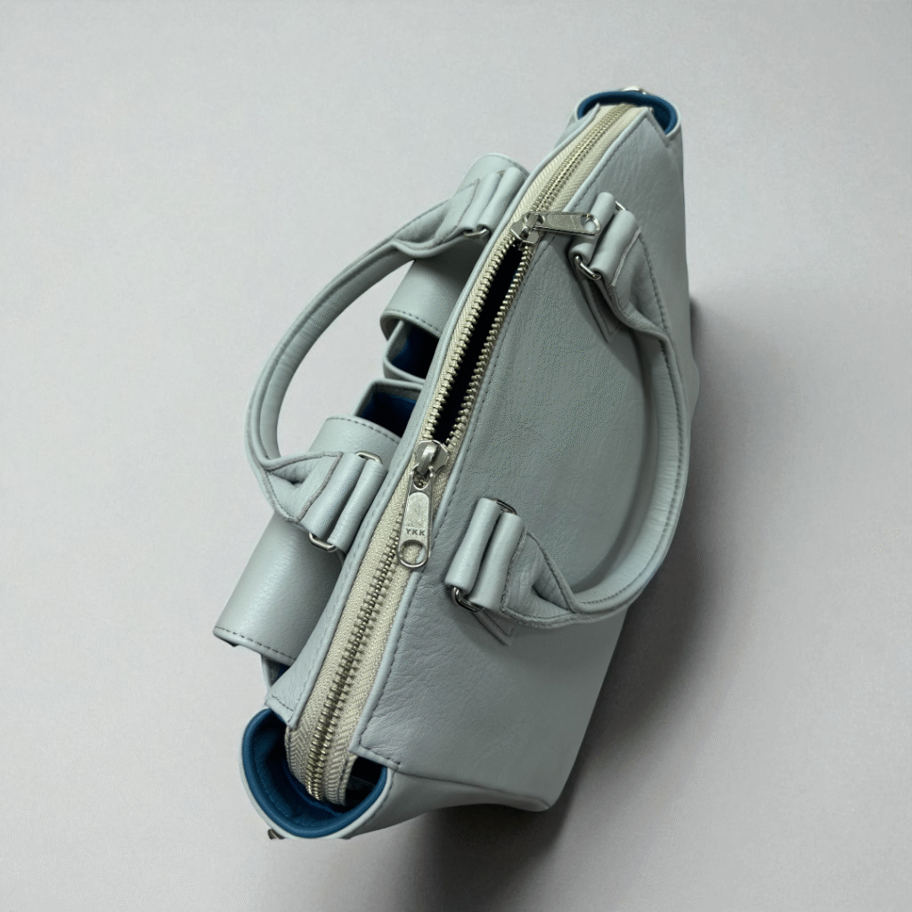 ファスナーがダブルファスナーにしているので、バッグの開け閉めがしやすい仕様にしました。