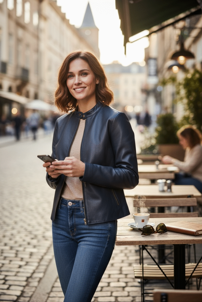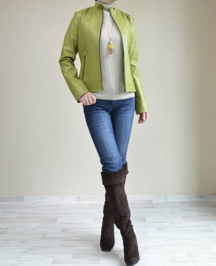 着丈を短くして、甘辛コーディネイトにも合うシルエットでデザインしています。